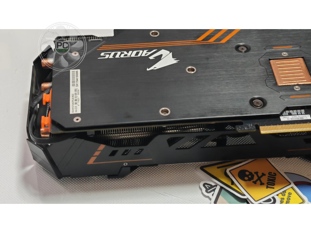 Az elülső oldalán lévő nagy rézbázisú borda elvonja a legtöbb hőt a GPU-tól és a VRAM-tól. A réz hátlap elvonja a hőt a GPU hátsó oldalától. Az összes többi komponens biztos hűtés alatt van a Windforce hűtőmodulnak köszönhetően. Az Aorus jobb hűtési megoldást kínál a felhasználóknak minden szinten.