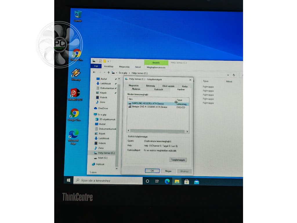 - Tárhely: 320 GB SATA merevlemez, 7200 RPM sebességgel – klasszikus régi merevlemez technológia, amely bár zajosabb és lassabb egy modern SSD-nél, még ma is elég egy alap munkához.